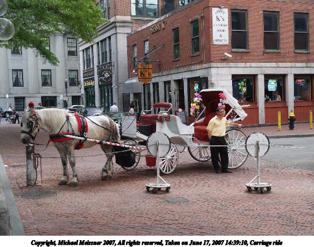 Picture #1: Carriage ride Thumb: 320x240, 31,852 bytes (32K) Small: 640x503, 98,152 bytes (96K), (html file) Copyright, Michael Meissner 2007, All rights reserved Olympus E-1 camera with Olympus 14-54mm f/2.8-3.5 lens f/3.5, ISO 100, 1/125 sec, 23.0mm, auto mode, SHQ, matrix metering, +2 sharpening 35mm equivalent focal length 46.0mm Taken by Michael Meissner on June 17, 2007 14:39:10 Last modified on June 17, 2007 at 14:39 |