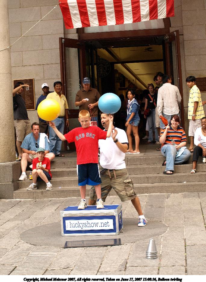 Picture #9: Balloon twirling Thumb: 342x456, 48,277 bytes (48K) Small: 684x935, 151,281 bytes (148K), (html file) Copyright, Michael Meissner 2007, All rights reserved Olympus E-510 camera with Olympus 40-150mm f/4.0-5.6 lens f/5.0, ISO 200, 1/160 sec, 40.0mm, auto mode, vivid color, SHQ, manual wb, matrix metering, -2 sharpening, image stabilization 35mm equivalent focal length 80.0mm Programs used: rotate Taken by Michael Meissner on June 17, 2007 15:08:36 Last modified on June 17, 2007 at 15:08 |