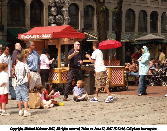 Picture #18: Cell phone interruption Thumb: 320x240, 33,158 bytes (33K) Small: 640x503, 90,399 bytes (89K), (html file) Copyright, Michael Meissner 2007, All rights reserved Olympus E-1 camera with Olympus 14-54mm f/2.8-3.5 lens f/5.6, ISO 200, 1/500 sec, 52.0mm, auto mode, SHQ, manual wb, matrix metering, +2 sharpening 35mm equivalent focal length 104.0mm Taken by Michael Meissner on June 17, 2007 15:12:25 Last modified on June 17, 2007 at 15:12 |