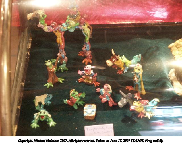 Picture #28: Frog nativity Thumb: 320x240, 28,462 bytes (28K) Small: 640x503, 65,851 bytes (65K), (html file) Copyright, Michael Meissner 2007, All rights reserved Olympus E-1 camera with Olympus 14-54mm f/2.8-3.5 lens f/3.3, ISO 800, 1/15 sec, 41.0mm, auto mode, SHQ, matrix metering, +2 sharpening 35mm equivalent focal length 82.0mm Taken by Michael Meissner on June 17, 2007 15:45:35 Last modified on June 17, 2007 at 15:45 |