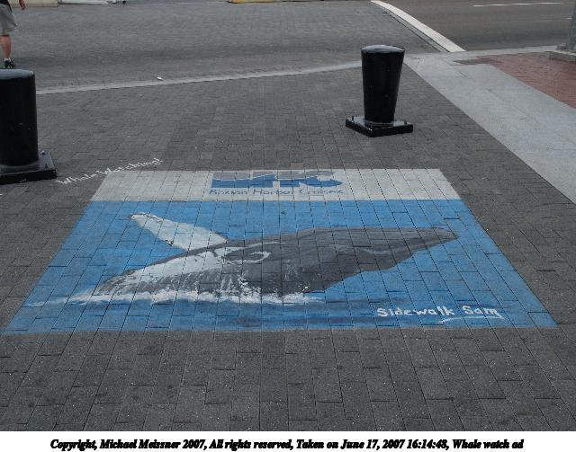 Picture #31: Whale watch ad Thumb: 320x240, 22,542 bytes (23K) Small: 640x503, 70,335 bytes (69K), (html file) Copyright, Michael Meissner 2007, All rights reserved Olympus E-1 camera with Olympus 14-54mm f/2.8-3.5 lens f/6.3, ISO 200, 1/320 sec, 19.0mm, auto mode, SHQ, matrix metering, +2 sharpening 35mm equivalent focal length 38.0mm Taken by Michael Meissner on June 17, 2007 16:14:48 Last modified on June 17, 2007 at 16:14 |