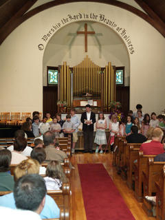 Picture #8: UCC 50th anniversary celebration service #8 Thumb: 456x342, 57,751 bytes (57K) Small: 912x707, 146,774 bytes (144K), (html file) Copyright, Michael Meissner 2007, All rights reserved Olympus E-510 camera with Olympus 40-150mm f/4.0-5.6 lens f/4.6, ISO 1600, 1/80 sec, 70.0mm, auto mode, vivid color, SHQ, matrix metering, -2 sharpening, image stabilization 35mm equivalent focal length 140.0mm Taken by Michael Meissner on June 24, 2007 15:48:22 Last modified on June 24, 2007 at 15:48 This picture is one of my favorites. |