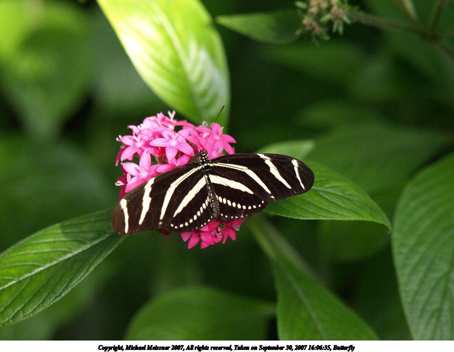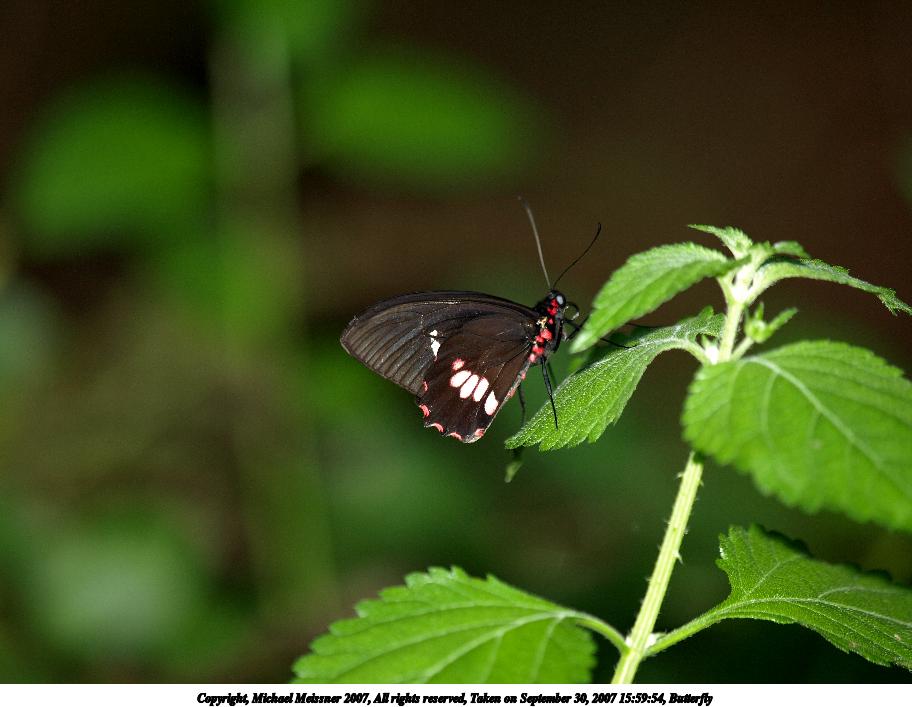 Picture #6: Butterfly #6 Thumb: 456x342, 28,041 bytes (28K) Small: 912x707, 72,380 bytes (71K), (html file) Copyright, Michael Meissner 2007, All rights reserved Olympus E-510 camera with Olympus 50-200mm f/2.8-3.5 lens f/5.6, ISO 200, FL-50 flash, 1/180 sec, 112.0mm, aperture priority, natural color, SHQ, matrix metering, auto + manual focus, image stabilization, noise filter low 35mm equivalent focal length 224.0mm Extra equipment used: FL-50 flash Taken by Michael Meissner on September 30, 2007 16:00:57 Last modified on September 30, 2007 at 16:00 |