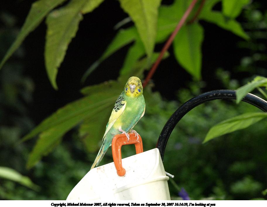 Picture #13: I'm looking at you Thumb: 456x342, 32,704 bytes (32K) Small: 912x707, 75,222 bytes (74K), (html file) Copyright, Michael Meissner 2007, All rights reserved Olympus E-510 camera with Olympus 50-200mm f/2.8-3.5 lens f/5.6, ISO 400, FL-50 flash, 1/160 sec, 79.0mm, aperture priority, natural color, SHQ, matrix metering, auto + manual focus, image stabilization, noise filter low 35mm equivalent focal length 158.0mm Extra equipment used: FL-50 flash Taken by Michael Meissner on September 30, 2007 16:14:39 Last modified on September 30, 2007 at 16:14 |