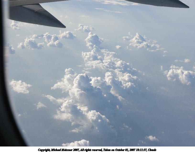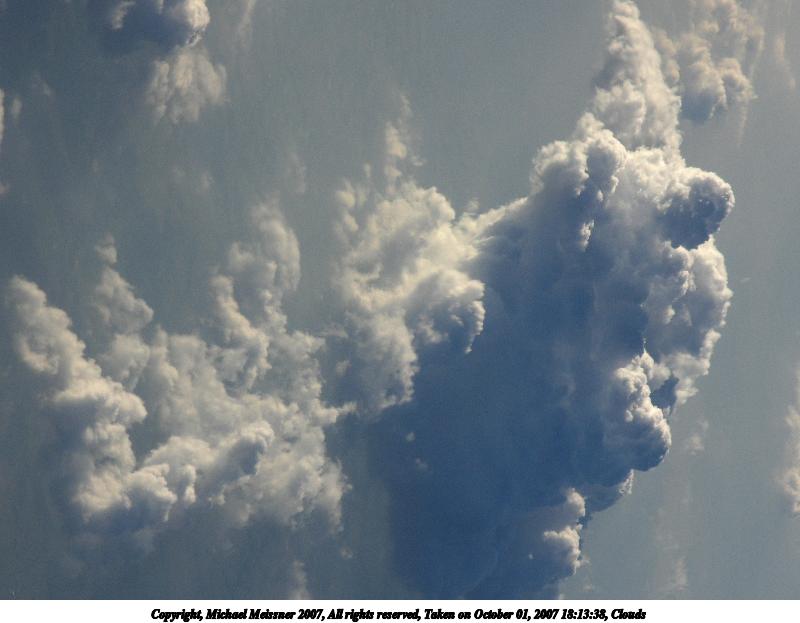 Picture #3: Clouds #3 Thumb: 480x360, 25,734 bytes (26K) Small: 800x623, 49,840 bytes (49K), (html file) Copyright, Michael Meissner 2007, All rights reserved Olympus C-8080WZ camera f/5.0, ISO 50, 1/500 sec, 35.6mm, auto mode, SHQ, matrix metering, bias -0.7 35mm equivalent focal length 140.0mm Programs used: gimp Taken by Michael Meissner on October 01, 2007 18:13:38 Last modified on October 01, 2007 at 18:13 |