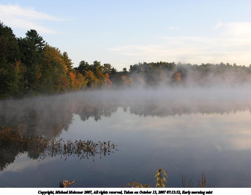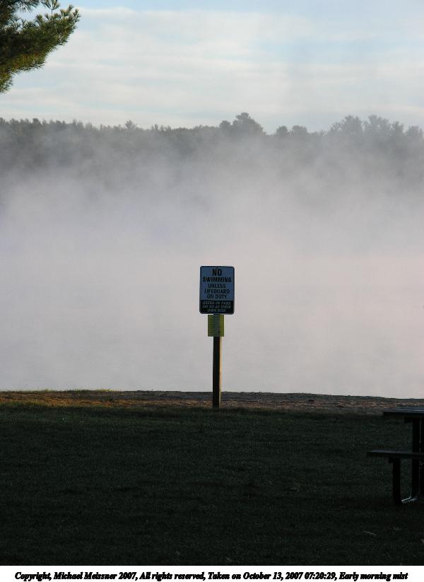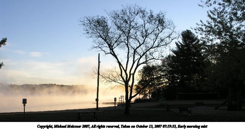 Picture #10: Early morning mist #3 Thumb: 400x200, 24,292 bytes (24K) Small: 800x423, 79,538 bytes (78K), (html file) Copyright, Michael Meissner 2007, All rights reserved Olympus C-8080WZ camera f/4.0, ISO 50, 1/250 sec, 7.1mm, auto mode, SHQ, spot metering, bias 1.3 35mm equivalent focal length 28.0mm Programs used: gimp Taken by Michael Meissner on October 13, 2007 07:19:33 Last modified on October 13, 2007 at 07:19 |