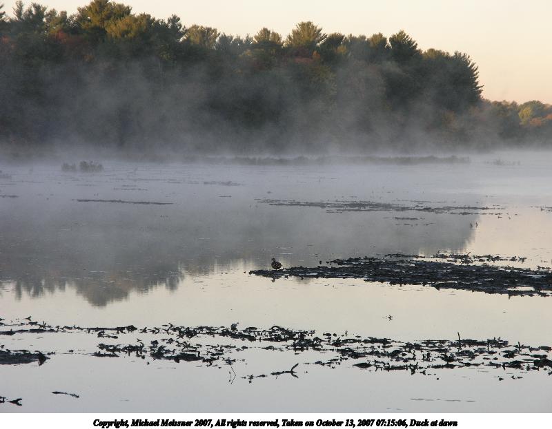 Picture #8: Duck at dawn Thumb: 400x300, 23,891 bytes (24K) Small: 800x623, 67,363 bytes (66K), (html file) Copyright, Michael Meissner 2007, All rights reserved Olympus C-8080WZ camera f/3.5, ISO 50, 1/125 sec, 35.6mm, auto mode, SHQ, spot metering, bias -0.7 35mm equivalent focal length 140.0mm Programs used: gimp Taken by Michael Meissner on October 13, 2007 07:15:06 Last modified on October 13, 2007 at 07:15 |