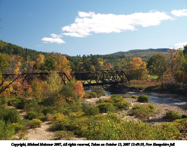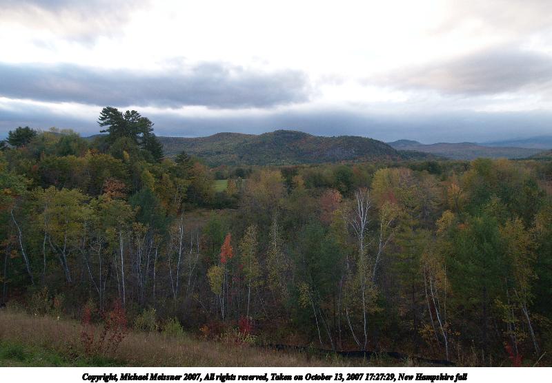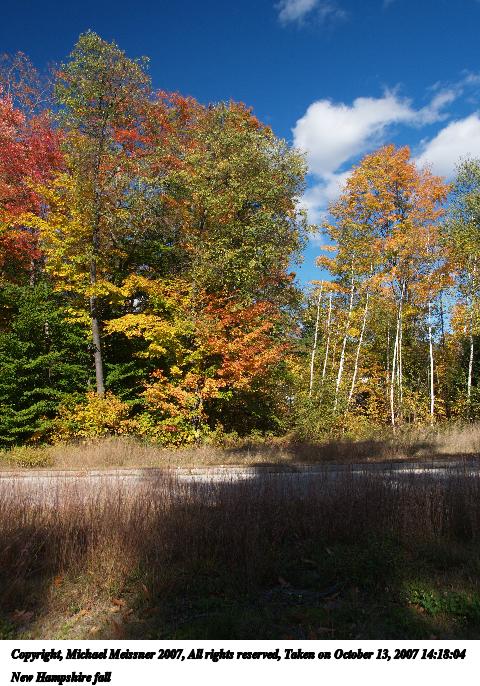 Picture #8: New Hampshire fall Thumb: 456x342, 37,832 bytes (37K) Small: 912x707, 105,429 bytes (103K), (html file) Copyright, Michael Meissner 2007, All rights reserved Olympus E-510 camera with Olympus 50-200mm f/2.8-3.5 lens f/4.5, ISO 100, 1/400 sec, 76.0mm, auto mode, natural color, SHQ, fine weather (5300K), matrix metering, auto + manual focus, image stabilization, noise filter low 35mm equivalent focal length 152.0mm Programs used: gimp Taken by Michael Meissner on October 13, 2007 14:42:14 Last modified on October 13, 2007 at 14:42 |