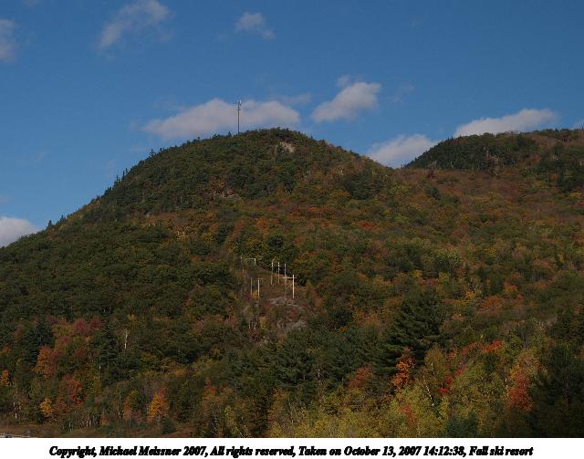 Picture #19: Fall ski resort Thumb: 320x240, 22,697 bytes (23K) Small: 640x503, 63,578 bytes (63K), (html file) Copyright, Michael Meissner 2007, All rights reserved Olympus E-1 camera with Olympus 14-54mm f/2.8-3.5 lens f/6.3, ISO 100, 1/320 sec, 37.0mm, auto mode, SHQ, matrix metering, bias -1.3, +2 sharpening, Exposure bracketing (shot 2) 35mm equivalent focal length 74.0mm Extra equipment used: polarizer Taken by Michael Meissner on October 13, 2007 14:12:38 Last modified on October 13, 2007 at 14:12 |