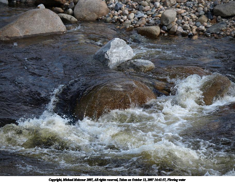 Picture #3: Flowing water #2 Thumb: 456x342, 58,459 bytes (58K) Small: 912x707, 201,508 bytes (197K), (html file) Copyright, Michael Meissner 2007, All rights reserved Olympus E-510 camera with Olympus 50-200mm f/2.8-3.5 lens f/5.0, ISO 100, 1/400 sec, 200.0mm, auto mode, natural color, SHQ, fine weather (5300K), matrix metering, manual focus, image stabilization, noise filter low 35mm equivalent focal length 401.0mm Taken by Michael Meissner on October 13, 2007 14:41:35 Last modified on October 13, 2007 at 14:41 |