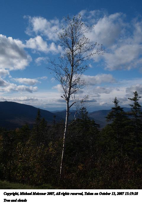 Picture #5: Tree and clouds Thumb: 240x320, 26,017 bytes (26K) Small: 480x686, 68,972 bytes (68K), (html file) Copyright, Michael Meissner 2007, All rights reserved Olympus E-1 camera with Olympus 14-54mm f/2.8-3.5 lens f/7.1, ISO 100, 1/250 sec, 22.0mm, auto mode, SHQ, matrix metering, +2 sharpening, Exposure bracketing (shot 1) 35mm equivalent focal length 44.0mm Extra equipment used: polarizer Programs used: rotate Taken by Michael Meissner on October 13, 2007 15:19:28 Last modified on October 13, 2007 at 15:19 |