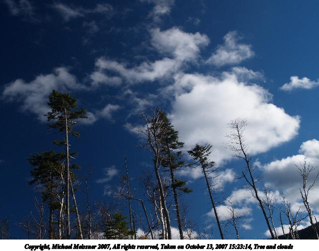 Picture #8: Tree and clouds #2 Thumb: 320x240, 24,126 bytes (24K) Small: 640x503, 60,670 bytes (60K), (html file) Copyright, Michael Meissner 2007, All rights reserved Olympus E-1 camera with Olympus 14-54mm f/2.8-3.5 lens f/6.3, ISO 100, 1/200 sec, 20.0mm, auto mode, SHQ, matrix metering, +2 sharpening, Exposure bracketing (shot 1) 35mm equivalent focal length 40.0mm Extra equipment used: polarizer Taken by Michael Meissner on October 13, 2007 15:23:14 Last modified on October 13, 2007 at 15:23 |