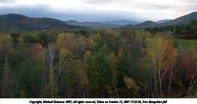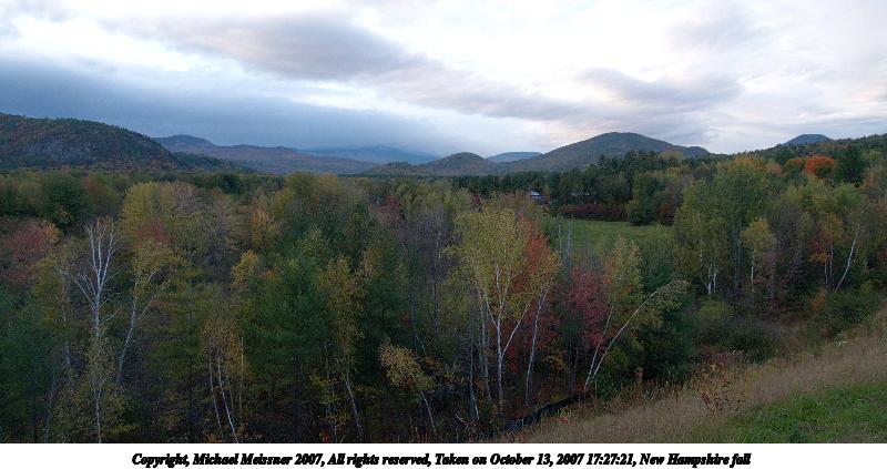 Picture #31: New Hampshire fall #11 Thumb: 480x240, 28,370 bytes (28K) Small: 800x423, 59,993 bytes (59K), (html file) Copyright, Michael Meissner 2007, All rights reserved Olympus E-1 camera with Olympus 14-54mm f/2.8-3.5 lens f/5.0, ISO 400, 1/100 sec, 14.0mm, auto mode, SHQ, matrix metering, bias 0.7, +2 sharpening, Exposure bracketing (shot 4) 35mm equivalent focal length 28.0mm Extra equipment used: polarizer Programs used: gimp Taken by Michael Meissner on October 13, 2007 17:26:05 Last modified on October 13, 2007 at 17:26 |