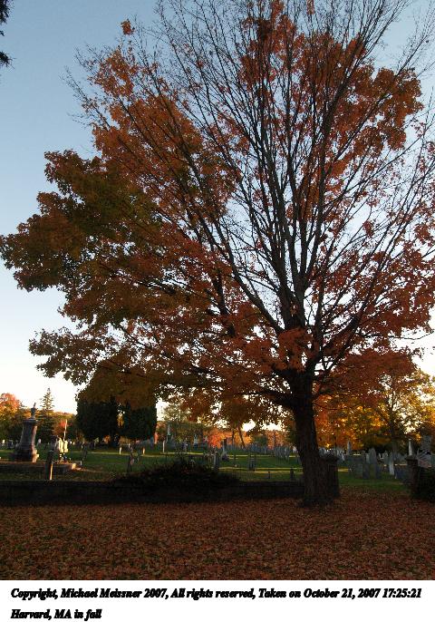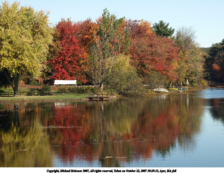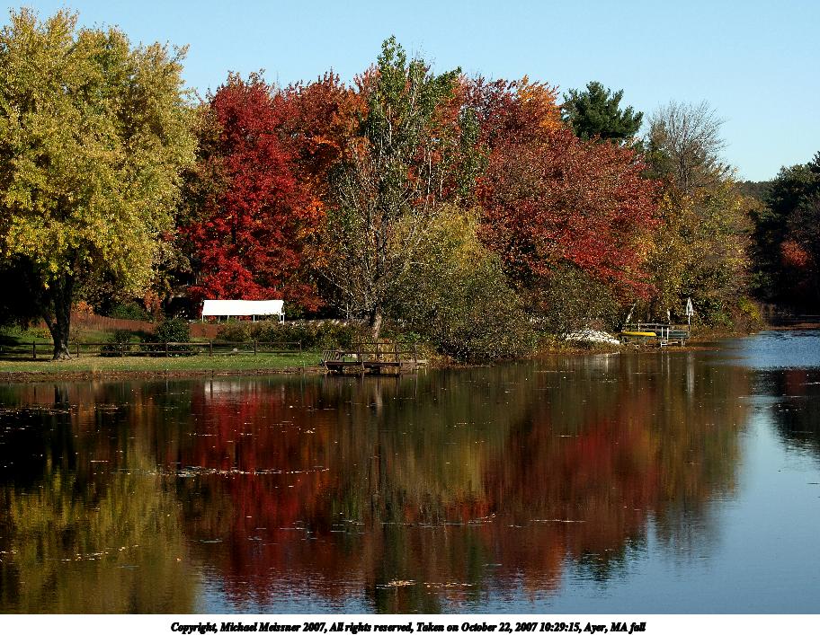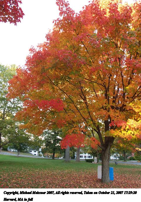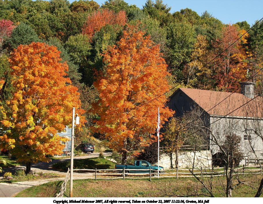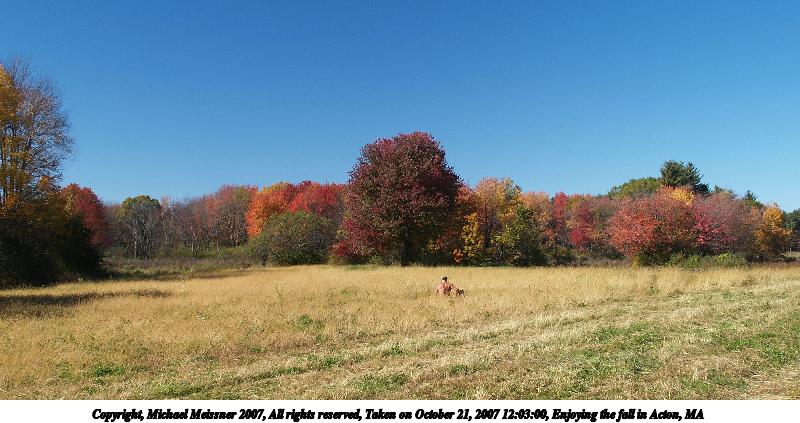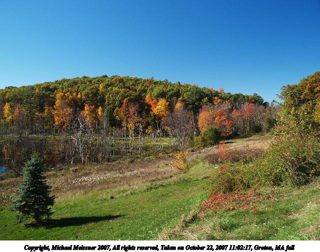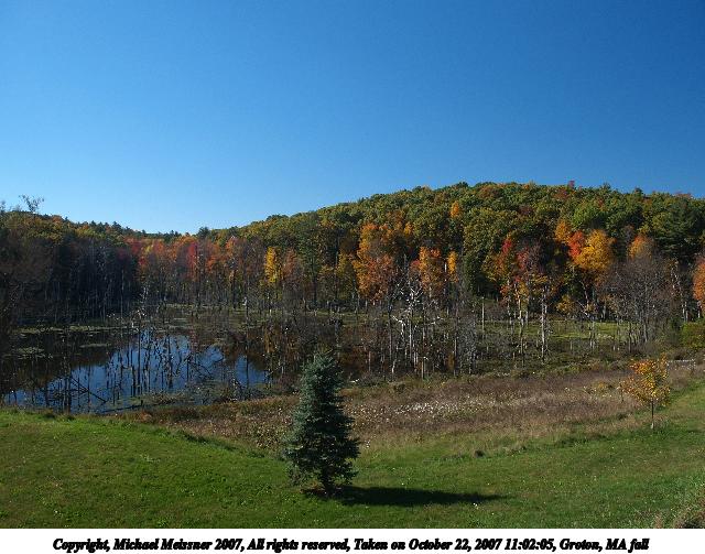 Picture #37: Acton fall #2 Thumb: 320x240, 29,812 bytes (30K) Small: 640x503, 92,851 bytes (91K), (html file) Copyright, Michael Meissner 2007, All rights reserved Olympus E-1 camera with Olympus 14-54mm f/2.8-3.5 lens f/4.5, ISO 100, 1/160 sec, 40.0mm, auto mode, SHQ, matrix metering, +2 sharpening 35mm equivalent focal length 80.0mm Extra equipment used: polarizer Taken by Michael Meissner on October 21, 2007 12:05:01 Last modified on October 21, 2007 at 12:05 This picture is one of my favorites. |