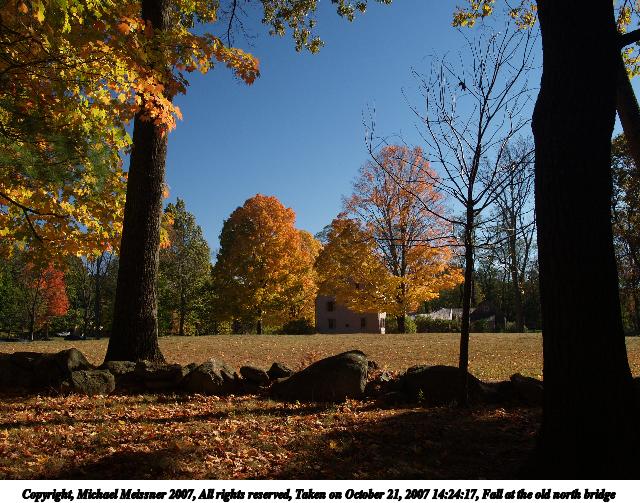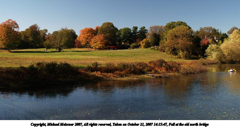 Picture #40: Fall at the old north bridge Thumb: 480x240, 35,904 bytes (36K) Small: 800x423, 83,671 bytes (82K), (html file) Copyright, Michael Meissner 2007, All rights reserved Olympus E-1 camera with Olympus 14-54mm f/2.8-3.5 lens f/5.0, ISO 100, 1/100 sec, 14.0mm, auto mode, SHQ, matrix metering, +2 sharpening 35mm equivalent focal length 28.0mm Extra equipment used: polarizer Programs used: gimp Taken by Michael Meissner on October 21, 2007 14:15:47 Last modified on October 21, 2007 at 14:15 |
