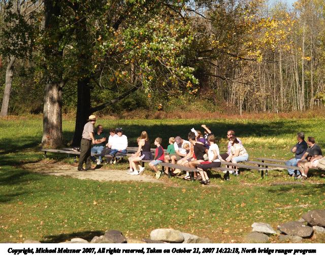 Picture #44: North bridge ranger program Thumb: 320x240, 36,539 bytes (36K) Small: 640x503, 118,084 bytes (116K), (html file) Copyright, Michael Meissner 2007, All rights reserved Olympus E-1 camera with Olympus 14-54mm f/2.8-3.5 lens f/4.5, ISO 100, 1/200 sec, 54.0mm, auto mode, SHQ, matrix metering, +2 sharpening 35mm equivalent focal length 108.0mm Extra equipment used: polarizer Taken by Michael Meissner on October 21, 2007 14:22:18 Last modified on October 21, 2007 at 14:22 |