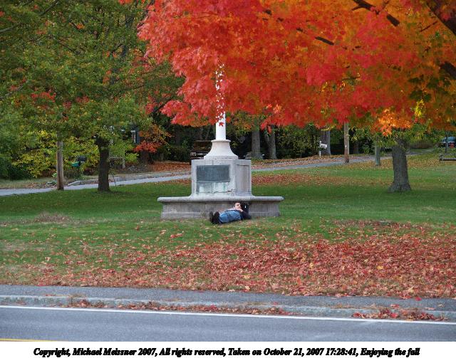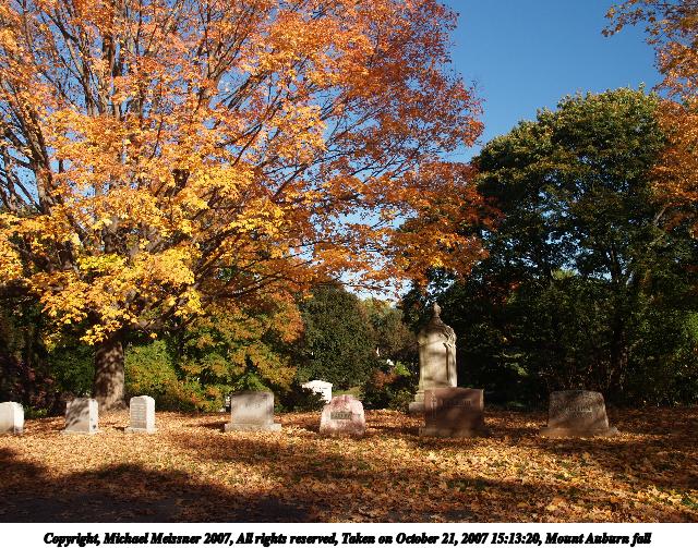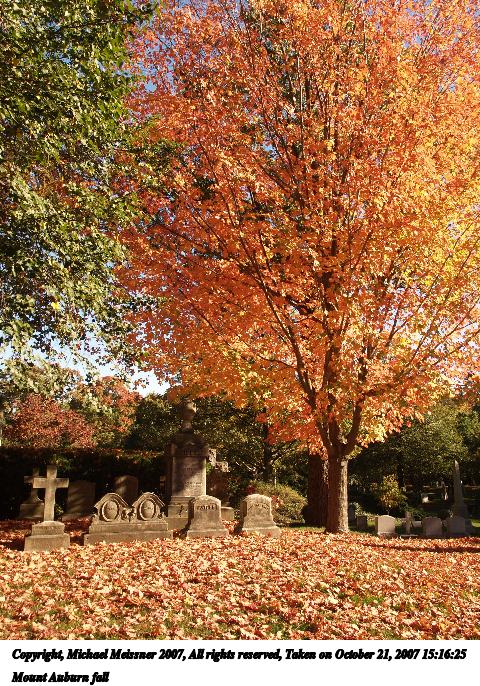 Picture #49: Mount Auburn fall #3 Thumb: 240x320, 51,543 bytes (51K) Small: 480x686, 161,111 bytes (158K), (html file) Copyright, Michael Meissner 2007, All rights reserved Olympus E-1 camera with Olympus 14-54mm f/2.8-3.5 lens f/4.5, ISO 100, 1/100 sec, 14.0mm, auto mode, SHQ, matrix metering, +2 sharpening 35mm equivalent focal length 28.0mm Extra equipment used: polarizer Programs used: rotate Taken by Michael Meissner on October 21, 2007 15:16:25 Last modified on October 21, 2007 at 15:16 This picture is one of my favorites. |