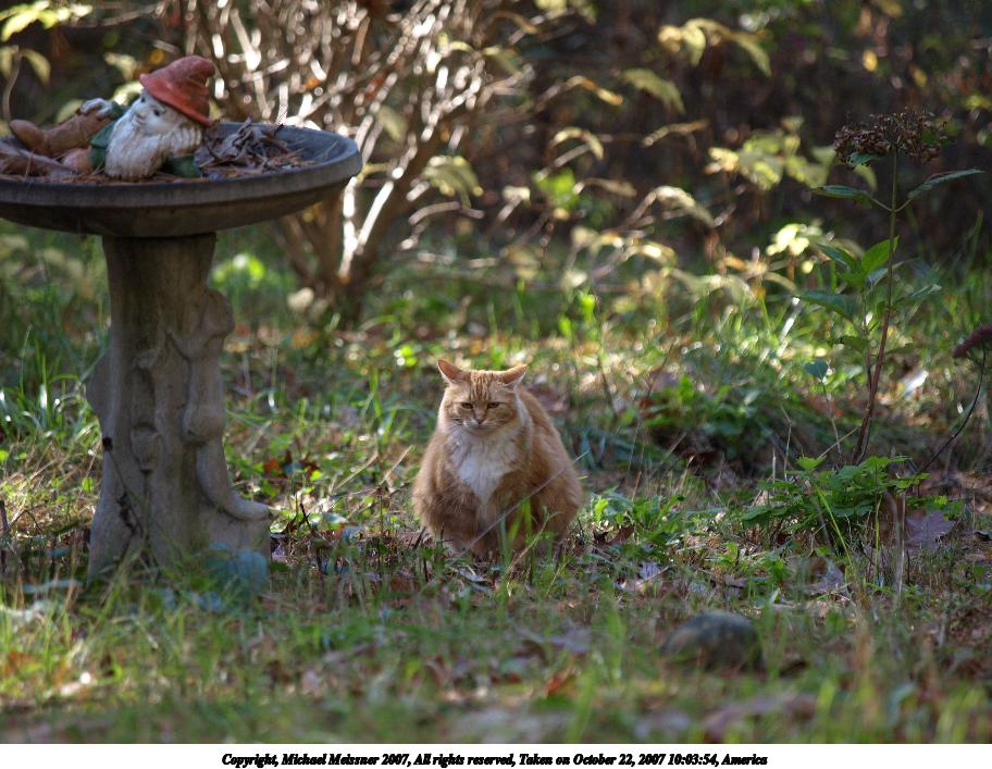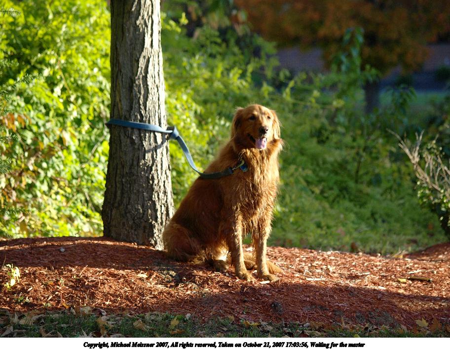 Picture #7: Waiting for the master Thumb: 456x342, 64,875 bytes (64K) Small: 912x707, 161,499 bytes (158K), (html file) Copyright, Michael Meissner 2007, All rights reserved Olympus E-510 camera with Olympus 50-200mm f/2.8-3.5 lens f/3.2, ISO 100, 1/250 sec, 108.0mm, auto mode, natural color, SHQ, matrix metering, image stabilization, noise filter low 35mm equivalent focal length 216.0mm Programs used: gimp Taken by Michael Meissner on October 21, 2007 17:03:56 Last modified on October 21, 2007 at 17:03 |