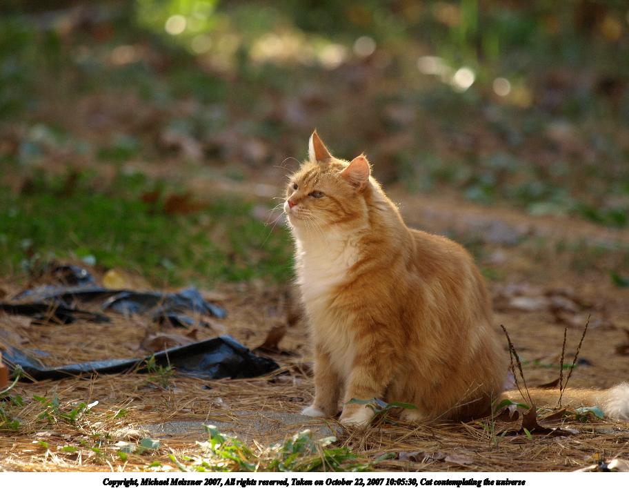 Picture #5: Cat contemplating the universe Thumb: 456x342, 39,875 bytes (39K) Small: 912x707, 102,913 bytes (101K), (html file) Copyright, Michael Meissner 2007, All rights reserved Olympus E-510 camera with Olympus 50-200mm f/2.8-3.5 lens f/3.5, ISO 200, 1/100 sec, 200.0mm, auto mode, natural color, SHQ, cloudy (6000K), matrix metering, image stabilization, noise filter low 35mm equivalent focal length 401.0mm Taken by Michael Meissner on October 22, 2007 10:05:30 Last modified on October 22, 2007 at 10:05 |