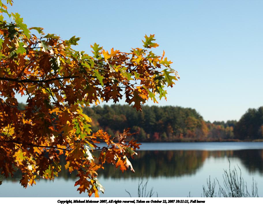 Picture #5: Fall leaves Thumb: 400x300, 45,112 bytes (45K) Small: 800x623, 110,287 bytes (108K), (html file) Copyright, Michael Meissner 2007, All rights reserved Olympus C-8080WZ camera f/3.5, ISO 50, 1/160 sec, 35.6mm, auto mode, SHQ, spot metering, bias -0.7 35mm equivalent focal length 140.0mm Programs used: gimp Taken by Michael Meissner on October 13, 2007 07:15:27 Last modified on October 13, 2007 at 07:15 This picture is one of my favorites. |
