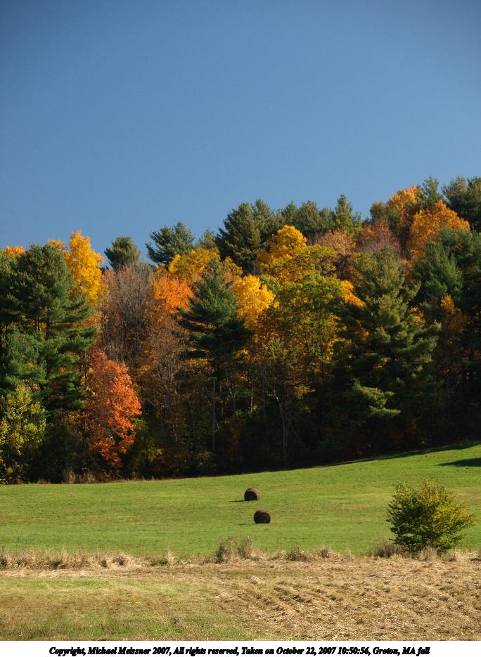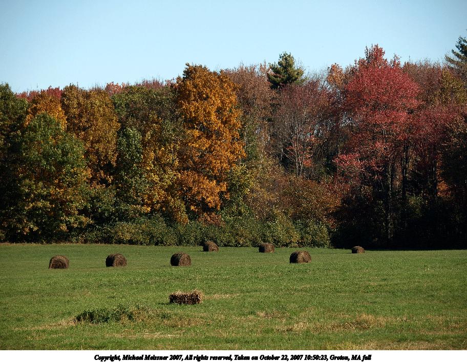 Picture #76: Ayer, MA fall #9 Thumb: 342x456, 45,880 bytes (45K) Small: 684x935, 145,600 bytes (143K), (html file) Copyright, Michael Meissner 2007, All rights reserved Olympus E-510 camera with Olympus 50-200mm f/2.8-3.5 lens f/4.0, ISO 100, 1/250 sec, 53.0mm, auto mode, natural color, SHQ, cloudy (6000K), matrix metering, image stabilization, noise filter low, exposure bracketing (shot 1) 35mm equivalent focal length 106.0mm Extra equipment used: polarizer Programs used: rotate Taken by Michael Meissner on October 22, 2007 10:29:38 Last modified on October 22, 2007 at 10:29 This picture is one of my favorites. |