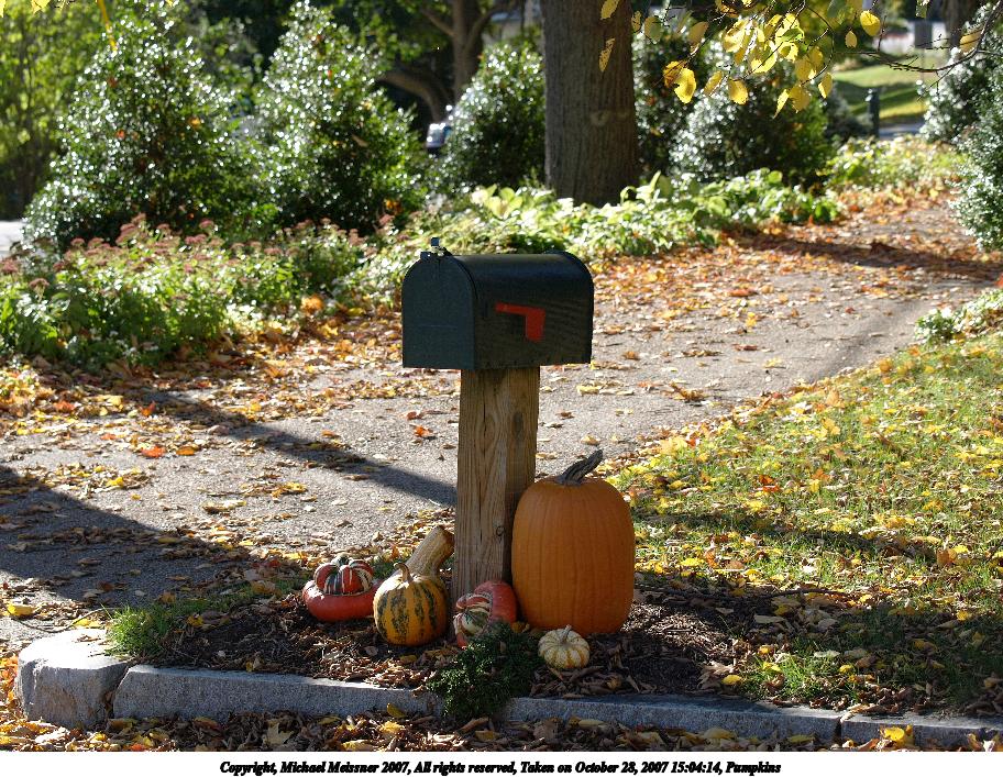 Picture #9: Budget pumpkins Thumb: 456x342, 45,689 bytes (45K) Small: 912x707, 130,698 bytes (128K), (html file) Copyright, Michael Meissner 2007, All rights reserved Olympus E-510 camera with Olympus 50-200mm f/2.8-3.5 lens f/3.0, ISO 400, 1/80 sec, 117.0mm, auto mode, natural color, SHQ, fine weather (5300K), matrix metering, auto + manual focus, image stabilization, noise filter low 35mm equivalent focal length 234.0mm Taken by Michael Meissner on October 13, 2007 17:53:16 Last modified on October 13, 2007 at 17:53 |