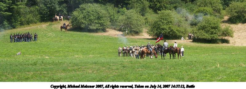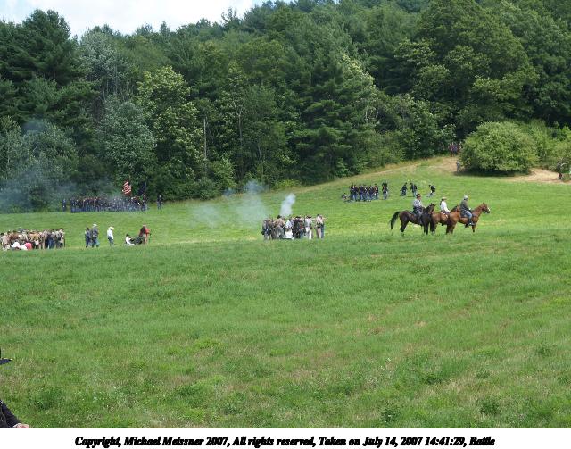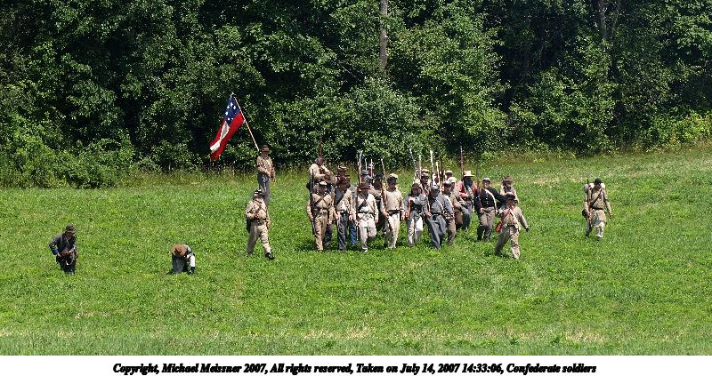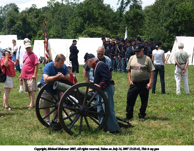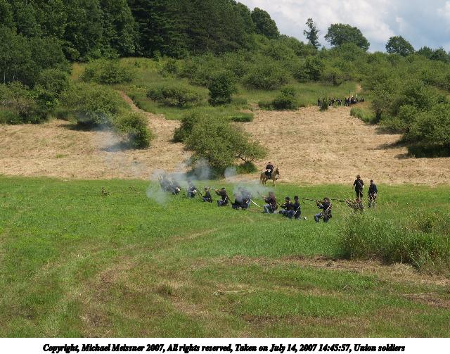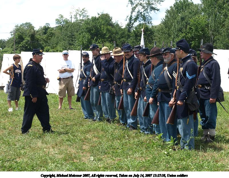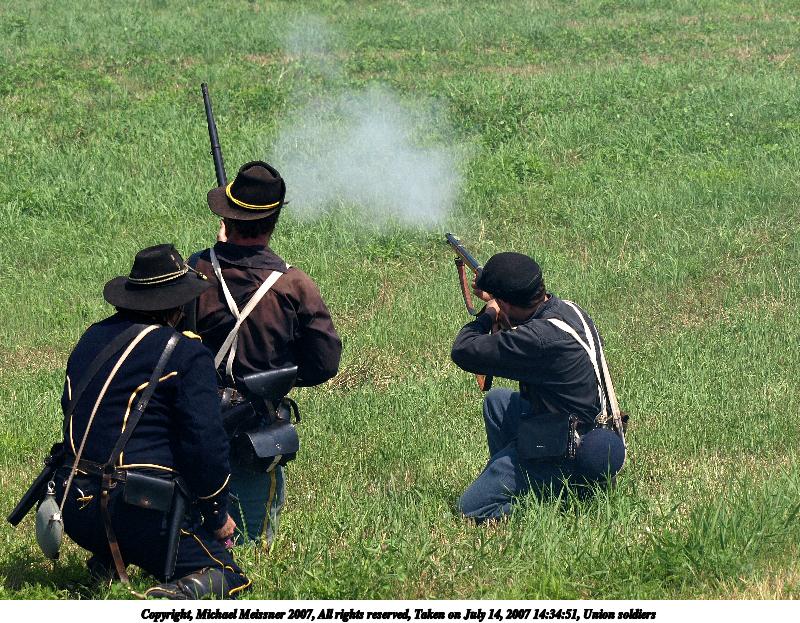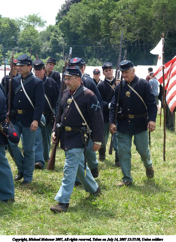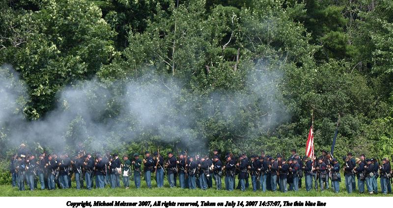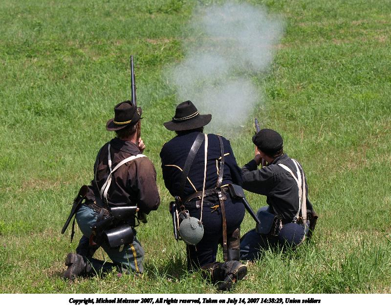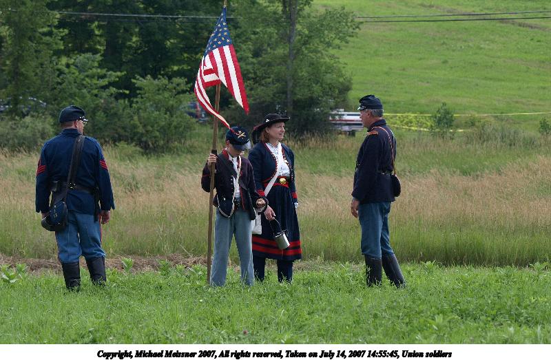 Picture #22: Union soldiers #5 640x503, 94,405 bytes (93K), (html file) Copyright, Michael Meissner 2007, All rights reserved Olympus E-1 camera with Olympus 14-54mm f/2.8-3.5 lens f/7.1, ISO 100, 1/400 sec, 43.0mm, auto mode, SHQ, matrix metering, +2 sharpening 35mm equivalent focal length 86.0mm Taken by Michael Meissner on July 14, 2007 14:45:57 Last modified on July 14, 2007 at 14:45 |