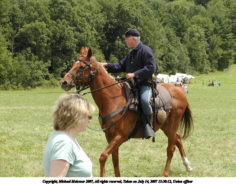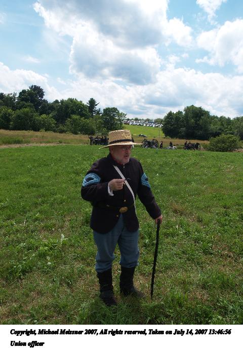 Picture #66: Union officer 800x623, 147,832 bytes (145K), (html file) Copyright, Michael Meissner 2007, All rights reserved Olympus C-2100UZ camera f/4.5, ISO 100, 1/500 sec, 18.6mm, auto mode, SHQ, cloudy, matrix metering 35mm equivalent focal length 103.0mm Taken by Michael Meissner on July 14, 2007 13:30:12 Last modified on July 14, 2007 at 13:30 |