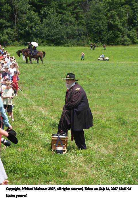 Picture #16: Union general and companion #2 800x623, 135,381 bytes (133K), (html file) Copyright, Michael Meissner 2007, All rights reserved Olympus E-510 camera with Olympus 50-200mm f/2.8-3.5 lens and Olympus EC-14 (1.4x) f/4.5, ISO 100, 1/250 sec, 136.0mm, auto mode, natural color, SHQ, matrix metering, -2 sharpening, image stabilization 35mm equivalent focal length 272.0mm, EC-14 Programs used: gimp Taken by Michael Meissner on July 14, 2007 14:53:18 Last modified on July 14, 2007 at 14:53 |