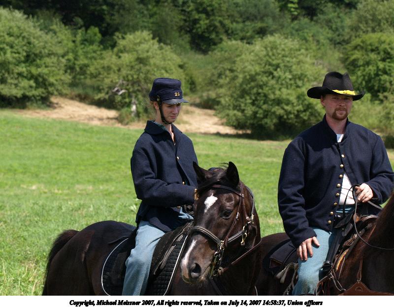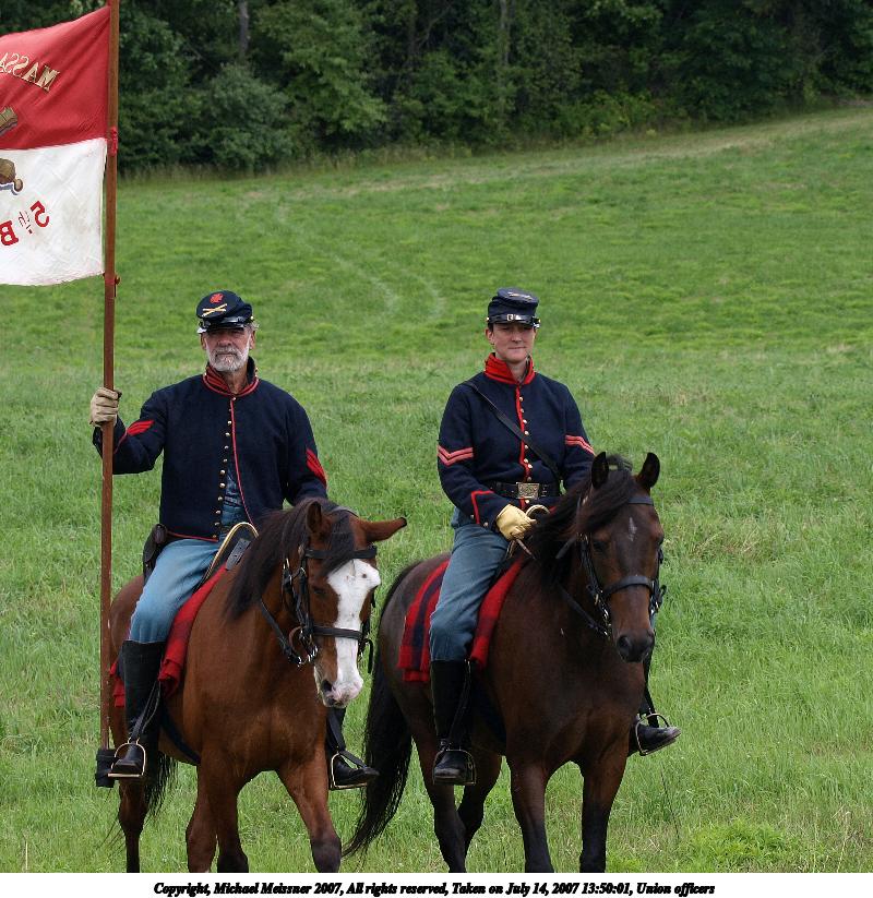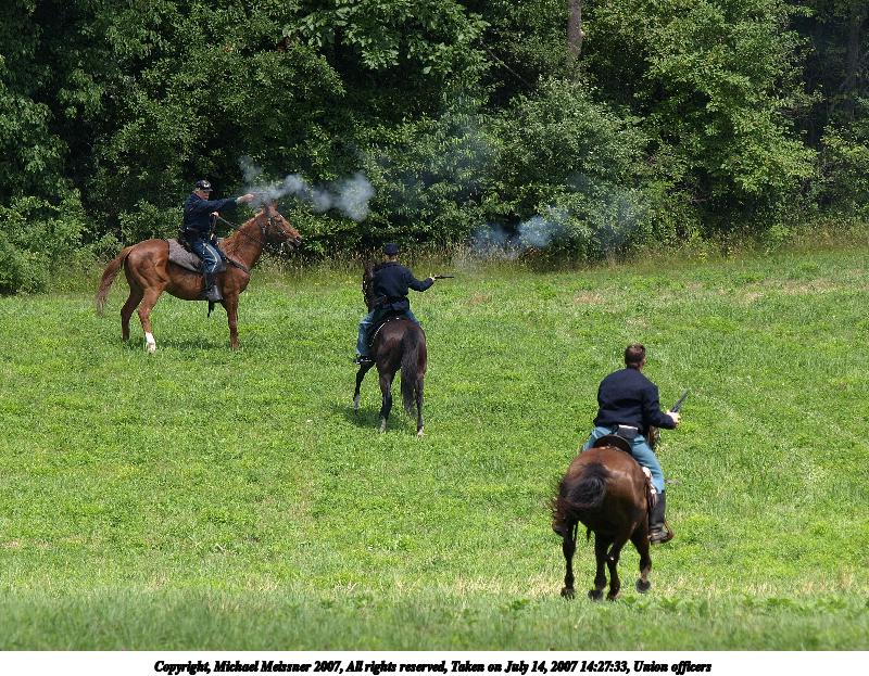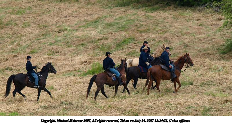 Picture #54: Union officers #2 800x423, 102,378 bytes (100K), (html file) Copyright, Michael Meissner 2007, All rights reserved Olympus E-510 camera with Olympus 50-200mm f/2.8-3.5 lens and Olympus EC-14 (1.4x) f/5.0, ISO 100, 1/320 sec, 184.0mm, auto mode, natural color, SHQ, matrix metering, -2 sharpening, image stabilization 35mm equivalent focal length 369.0mm, EC-14 Programs used: gimp Taken by Michael Meissner on July 14, 2007 13:54:22 Last modified on July 14, 2007 at 13:54 |