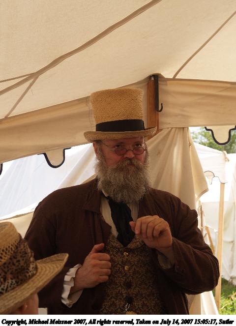 Picture #5: Sutler 480x663, 53,462 bytes (53K), (html file) Copyright, Michael Meissner 2007, All rights reserved Olympus E-1 camera with Olympus 14-54mm f/2.8-3.5 lens f/5.6, ISO 100, 1/200 sec, 35.0mm, auto mode, SHQ, matrix metering, +2 sharpening 35mm equivalent focal length 70.0mm Programs used: rotate Taken by Michael Meissner on July 14, 2007 15:05:17 Last modified on July 14, 2007 at 15:05 |