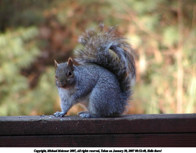 Picture #1: Hello there! Thumb: 400x300, 25,042 bytes (25K) Small: 800x623, 62,513 bytes (62K), (html file) Copyright, Michael Meissner 2007, All rights reserved Olympus C-2100UZ camera f/3.5, ISO 100, 1/50 sec, 70.0mm, auto mode, SHQ, matrix metering 35mm equivalent focal length 388.0mm Programs used: gimp Taken by Michael Meissner on January 30, 2007 08:52:40 Last modified on January 30, 2007 at 08:52 The file originally appeared in http://www.the-meissners.org/2007-small-albums/2007-02/index.html. |