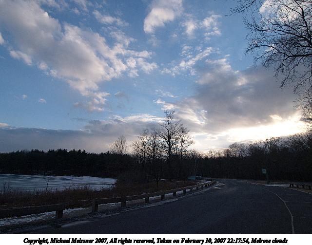 Picture #1: Melrose clouds Thumb: 320x240, 24,575 bytes (24K) Small: 640x503, 61,605 bytes (61K), (html file) Copyright, Michael Meissner 2007, All rights reserved Olympus E-1 camera with Olympus 11-22mm f/2.8-3.5 lens f/7.1, ISO 100, 1/250 sec, 11.0mm, auto mode, SHQ, matrix metering, bias 0.7, +2 sharpening, Exposure bracketing (shot 4) 35mm equivalent focal length 22.0mm Programs used: gimp Taken by Michael Meissner on February 10, 2007 22:17:54 Last modified on February 10, 2007 at 22:17 The file originally appeared in http://www.the-meissners.org/2007-small-albums/2007-02/index.html. |