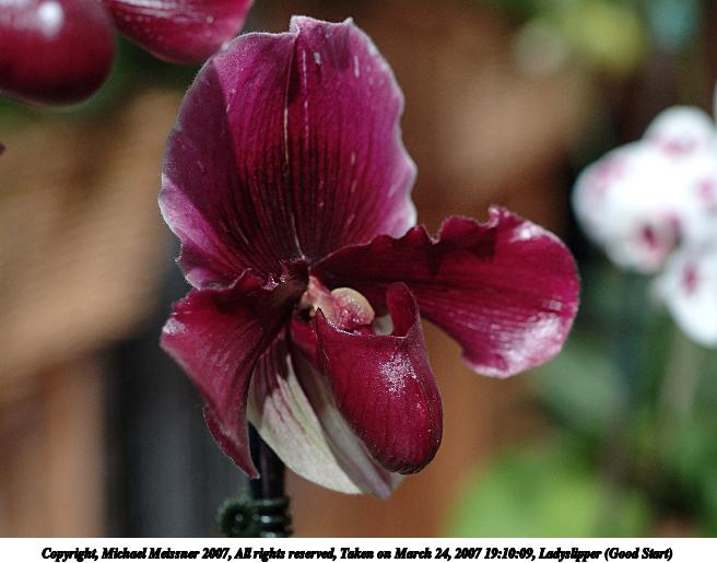 Picture #3: Ladyslipper (Good Start) Thumb: 328x246, 34,348 bytes (34K) Small: 656x515, 60,785 bytes (60K), (html file) Copyright, Michael Meissner 2007, All rights reserved Olympus E-1 camera with Olympus 50mm f/2.0 lens f/2.5, ISO 200, 1/160 sec, 50.0mm, auto mode, SHQ, matrix metering, bias -0.3, +2 sharpening 35mm equivalent focal length 100.0mm Programs used: RAW, gimp Taken by Michael Meissner on March 24, 2007 19:10:09 Last modified on March 24, 2007 at 19:10 The file originally appeared in http://www.the-meissners.org/2007-small-albums/2007-flowershow/index.html. |
