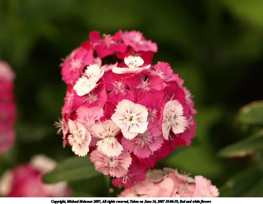Picture #1: Red and white flowers Thumb: 456x342, 35,252 bytes (35K) Small: 912x707, 81,332 bytes (80K), (html file) Copyright, Michael Meissner 2007, All rights reserved Olympus E-510 camera with Olympus 50mm f/2.0 lens f/4.0, ISO 400, 1/400 sec, 50.0mm, auto mode, vivid color, high key, SHQ, manual wb, matrix metering, -2 sharpening, image stabilization, noise reduction 35mm equivalent focal length 100.0mm Taken by Michael Meissner on June 16, 2007 18:06:39 Last modified on June 16, 2007 at 18:06 The file originally appeared in http://www.the-meissners.org/2007-small-albums/2007-06/index.html. |
