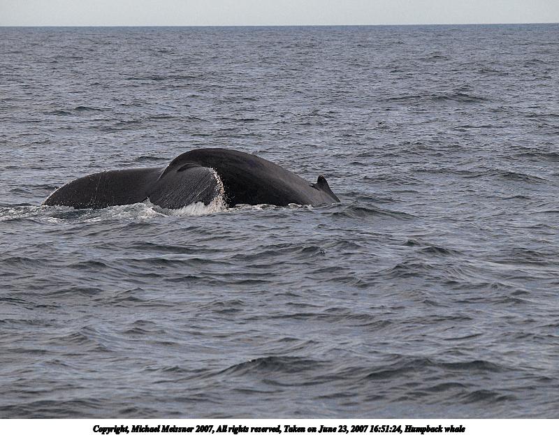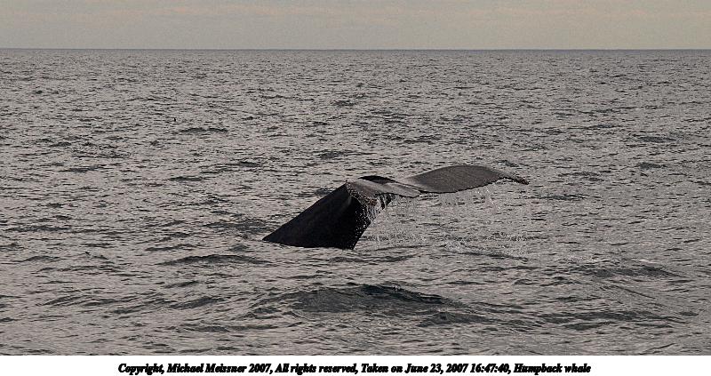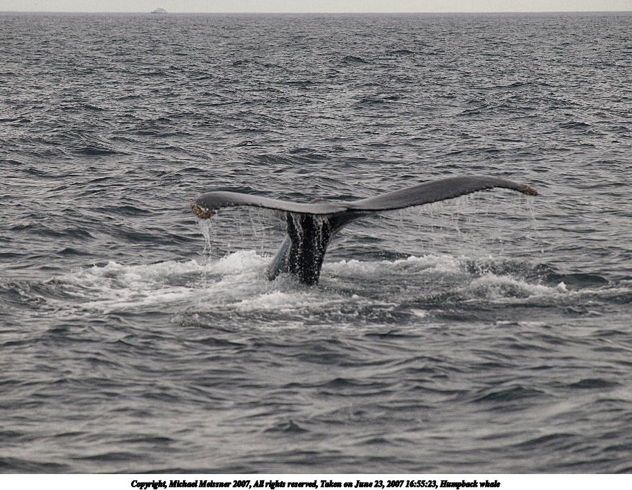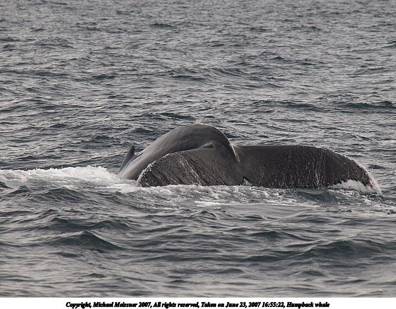 Picture #2: Humpback whale Thumb: 400x200, 40,213 bytes (40K) Small: 800x423, 118,422 bytes (116K), (html file) Copyright, Michael Meissner 2007, All rights reserved Olympus E-510 camera with Olympus 50-200mm f/2.8-3.5 lens f/6.3, ISO 200, 1/800 sec, 117.0mm, auto mode, vivid color, SHQ, manual wb, center weight metering, -2 sharpening, continous focus, image stabilization, noise reduction 35mm equivalent focal length 234.0mm Programs used: gimp Taken by Michael Meissner on June 23, 2007 16:47:40 Last modified on June 23, 2007 at 16:47 The file originally appeared in http://www.the-meissners.org/2007-small-albums/2007-06/index.html. |