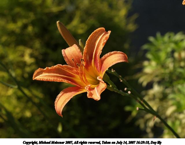 Picture #21: Day lily #4 Thumb: 320x240, 36,586 bytes (36K) Small: 640x503, 60,004 bytes (59K), (html file) Copyright, Michael Meissner 2007, All rights reserved Olympus E-1 camera with Olympus 50mm f/2.0 lens f/5.0, ISO 200, 1/800 sec, 50.0mm, auto mode, SHQ, matrix metering, +2 sharpening 35mm equivalent focal length 100.0mm Programs used: NoiseNinja Taken by Michael Meissner on July 14, 2007 16:29:18 Last modified on July 14, 2007 at 16:29 The file originally appeared in http://www.the-meissners.org/2007-small-albums/2007-nanag/index.html. |