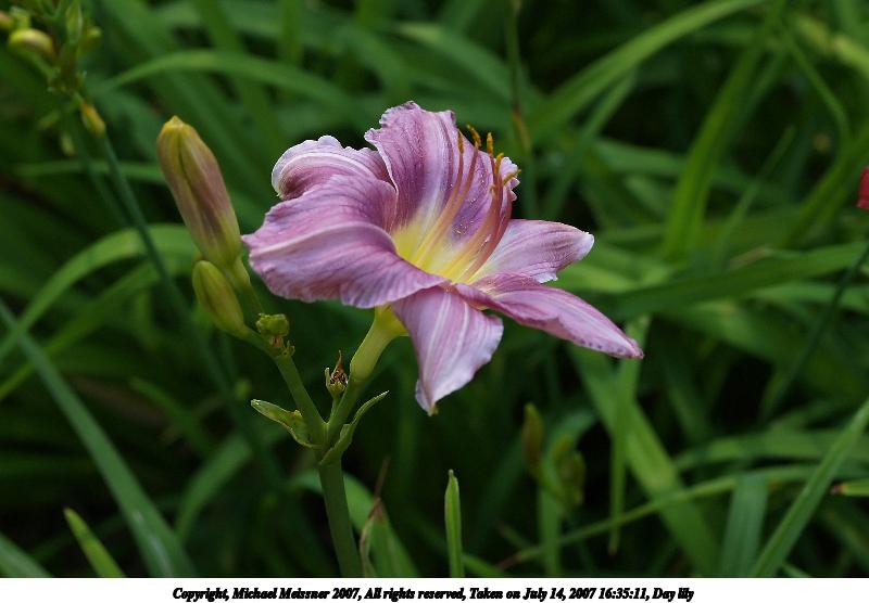 Picture #18: Day lily #2 Thumb: 320x240, 42,127 bytes (42K) Small: 640x503, 72,263 bytes (71K), (html file) Copyright, Michael Meissner 2007, All rights reserved Olympus E-1 camera with Olympus 50mm f/2.0 lens f/4.0, ISO 200, 1/500 sec, 50.0mm, auto mode, SHQ, matrix metering, +2 sharpening 35mm equivalent focal length 100.0mm Programs used: NoiseNinja Taken by Michael Meissner on July 14, 2007 16:17:20 Last modified on July 14, 2007 at 16:17 The file originally appeared in http://www.the-meissners.org/2007-small-albums/2007-nanag/index.html. |