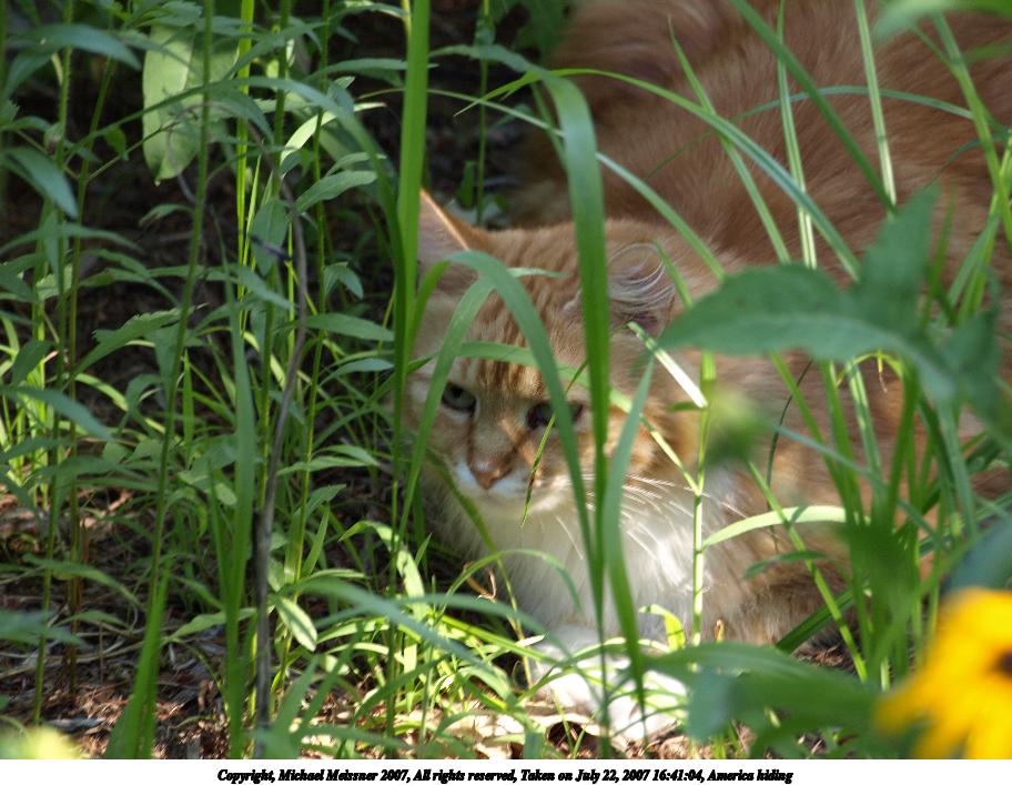 Picture #3: America hiding Thumb: 456x342, 50,878 bytes (50K) Small: 912x707, 117,393 bytes (115K), (html file) Copyright, Michael Meissner 2007, All rights reserved Olympus E-510 camera with Olympus 40-150mm f/4.0-5.6 lens f/5.6, ISO 200, 1/30 sec, 150.0mm, auto mode, natural color, SHQ, matrix metering, -1 sharpening, auto + manual focus, image stabilization, noise filter low 35mm equivalent focal length 301.0mm Taken by Michael Meissner on July 22, 2007 16:41:04 Last modified on July 22, 2007 at 16:41 The file originally appeared in http://www.the-meissners.org/2007-small-albums/2007-07/index.html. |
