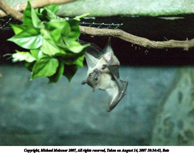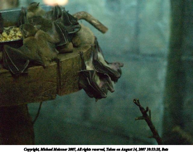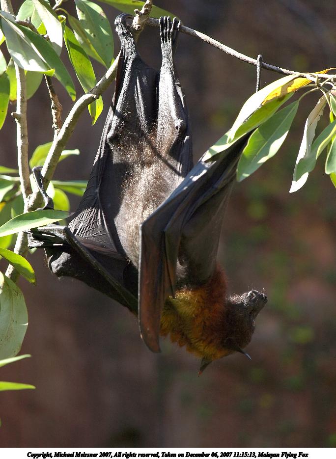 Picture #2: Malayan Flying Fox Thumb: 342x456, 44,711 bytes (44K) Small: 684x935, 109,056 bytes (107K), (html file) Copyright, Michael Meissner 2007, All rights reserved Olympus E-510 camera with Olympus 50-200mm f/2.8-3.5 lens f/3.5, ISO 200, 1/200 sec, 200.0mm, auto mode, natural color, SHQ, spot metering, -1 sharpening, image stabilization, noise filter low 35mm equivalent focal length 401.0mm Programs used: gimp, neatimage, rotate Taken by Michael Meissner on December 06, 2007 11:15:13 Last modified on December 06, 2007 at 10:15 The file originally appeared in http://www.the-meissners.org/2007-small-albums/2007-wdw-animal-park/index.html. |