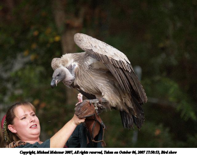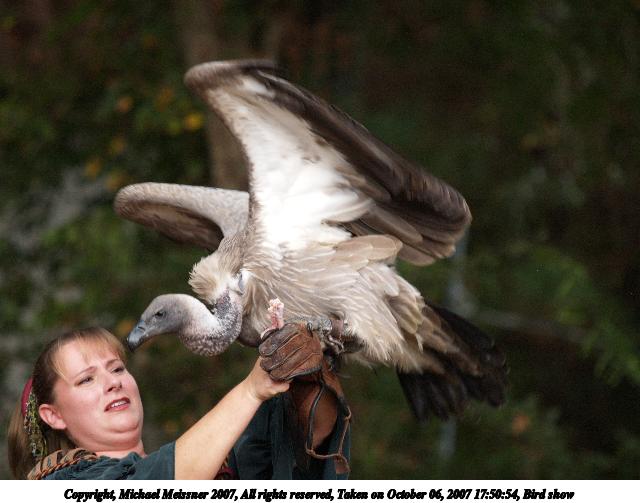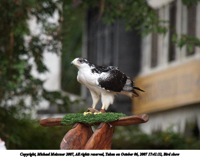 Picture #9: Bird show #3 Thumb: 320x240, 22,717 bytes (23K) Small: 640x503, 53,391 bytes (53K), (html file) Copyright, Michael Meissner 2007, All rights reserved Olympus E-1 camera with Olympus 50-200mm f/2.8-3.5 lens f/4.0, ISO 400, 1/160 sec, 182.0mm, auto mode, SHQ, matrix metering, +2 sharpening 35mm equivalent focal length 365.0mm Taken by Michael Meissner on October 06, 2007 17:50:54 Last modified on October 06, 2007 at 17:50 The file originally appeared in http://www.the-meissners.org/2007-small-albums/2007-texas-ren/index.html. |