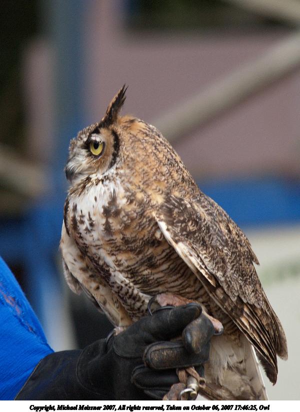 Picture #7: Owl #2 Thumb: 320x240, 25,828 bytes (26K) Small: 640x503, 63,639 bytes (63K), (html file) Copyright, Michael Meissner 2007, All rights reserved Olympus E-1 camera with Olympus 50-200mm f/2.8-3.5 lens f/4.0, ISO 400, 1/160 sec, 200.0mm, auto mode, SHQ, matrix metering, +2 sharpening 35mm equivalent focal length 401.0mm Taken by Michael Meissner on October 06, 2007 17:46:57 Last modified on October 06, 2007 at 17:46 The file originally appeared in http://www.the-meissners.org/2007-small-albums/2007-texas-ren/index.html. |