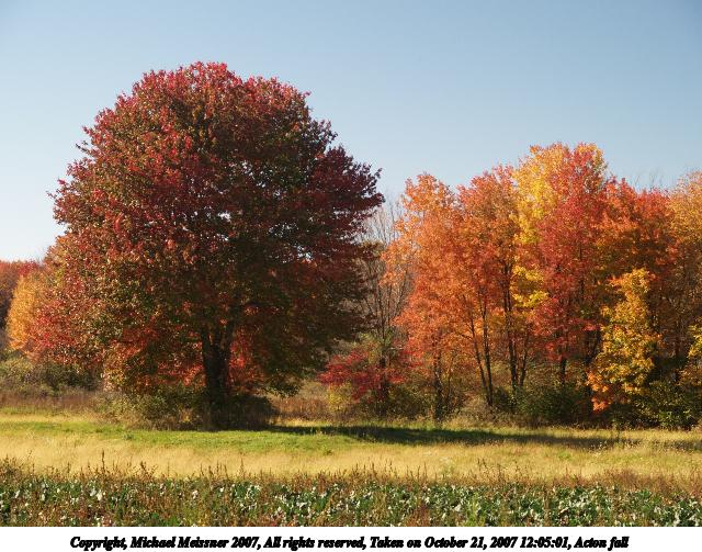 Picture #3: Groton fall Thumb: 408x306, 35,793 bytes (35K) Small: 816x635, 125,890 bytes (123K), (html file) Copyright, Michael Meissner 2007, All rights reserved Olympus C-8080WZ camera f/4.0, ISO 50, 1/400 sec, 20.6mm, auto mode, SHQ, matrix metering 35mm equivalent focal length 81.0mm Programs used: gimp Taken by Michael Meissner on October 14, 2007 15:57:40 Last modified on October 14, 2007 at 15:57 The file originally appeared in http://www.the-meissners.org/2007-small-albums/2007-10/index.html. |