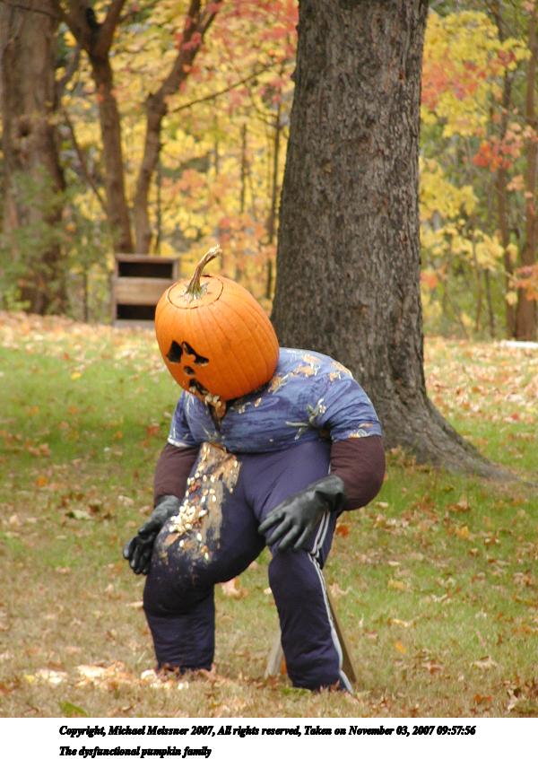 Picture #13: The dysfunctional pumpkin family #2 Thumb: 300x400, 41,408 bytes (41K) Small: 600x846, 93,303 bytes (92K), (html file) Copyright, Michael Meissner 2007, All rights reserved Olympus C-2100UZ camera f/2.8, ISO 100, 1/60 sec, 48.3mm, auto mode, SHQ, cloudy, matrix metering 35mm equivalent focal length 268.0mm Programs used: rotate Taken by Michael Meissner on November 03, 2007 09:57:56 Last modified on November 03, 2007 at 09:57 The file originally appeared in http://www.the-meissners.org/2007-small-albums/2007-11/index.html. |