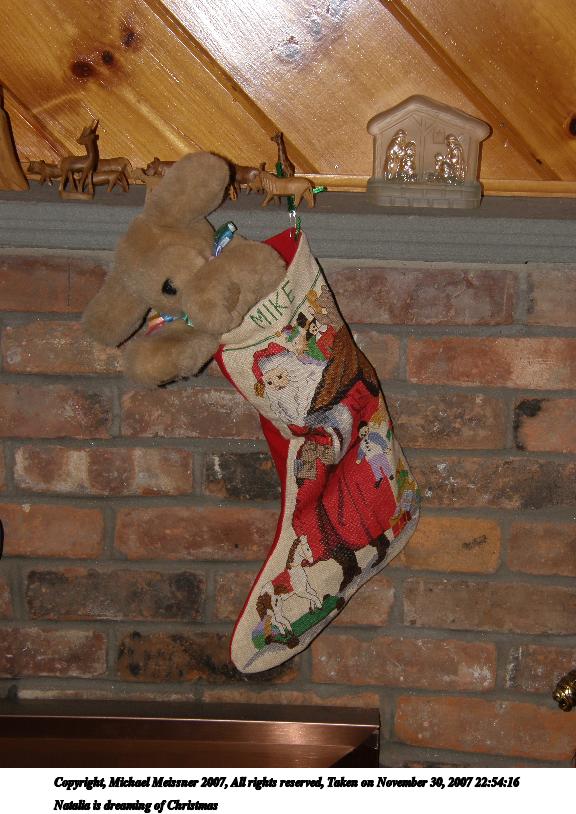 Picture #4: Natalia is dreaming of Christmas Thumb: 288x384, 31,986 bytes (32K) Small: 576x814, 91,219 bytes (90K), (html file) Copyright, Michael Meissner 2007, All rights reserved Olympus SP-550UZ camera f/3.8, ISO 50, flash, 1/80 sec, 14.1mm, auto mode, HQ, matrix metering, +1 sharpening 35mm equivalent focal length 85.0mm Programs used: rotate Taken by Michael Meissner on November 30, 2007 22:54:16 Last modified on November 30, 2007 at 21:54 The file originally appeared in http://www.the-meissners.org/2007-small-albums/2007-12/index.html. |