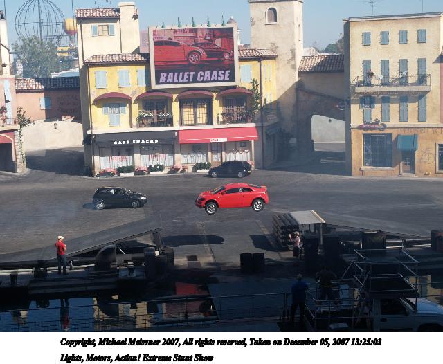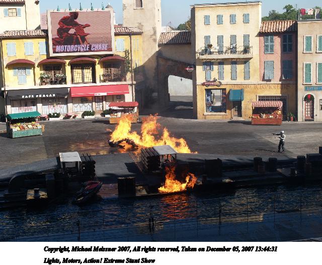 Picture #2: Lights, Motors, Action! Extreme Stunt Show #2 Thumb: 320x240, 30,892 bytes (31K) Small: 640x526, 85,792 bytes (84K), (html file) Copyright, Michael Meissner 2007, All rights reserved Olympus E-1 camera with Olympus 14-54mm f/2.8-3.5 lens f/6.3, ISO 100, 1/320 sec, 31.0mm, auto mode, SHQ, matrix metering, bias 0.3, +2 sharpening 35mm equivalent focal length 62.0mm Taken by Michael Meissner on December 05, 2007 13:44:31 Last modified on December 05, 2007 at 12:44 The file originally appeared in http://www.the-meissners.org/2007-small-albums/2007-wdw-studio/index.html. |