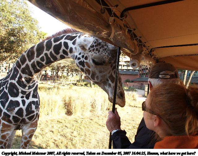 Picture #1: Hmmm, what have we got here? Thumb: 320x240, 35,899 bytes (36K) Small: 640x503, 94,504 bytes (93K), (html file) Copyright, Michael Meissner 2007, All rights reserved Olympus E-1 camera with Olympus 14-54mm f/2.8-3.5 lens f/4.0, ISO 100, 1/80 sec, 14.0mm, auto mode, SHQ, matrix metering, bias 1.0, +2 sharpening, Exposure bracketing (shot 4) 35mm equivalent focal length 28.0mm Programs used: gimp Taken by Michael Meissner on December 05, 2007 16:04:25 Last modified on December 05, 2007 at 15:04 The file originally appeared in http://www.the-meissners.org/2007-small-albums/2007-wdw-animal-lodge/index.html. |