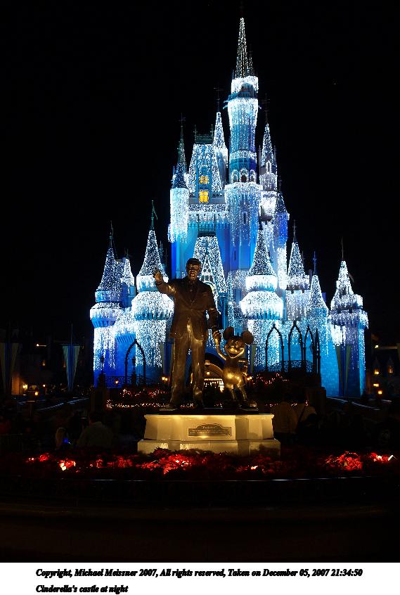 Picture #4: Cinderella's castle at night Thumb: 284x400, 34,745 bytes (34K) Small: 569x846, 87,598 bytes (86K), (html file) Copyright, Michael Meissner 2007, All rights reserved Olympus E-510 camera with Olympus 14-54mm f/2.8-3.5 lens f/2.9, ISO 100, 1/3 sec, 20.0mm, auto mode, natural color, SHQ, spot metering, -1 sharpening, image stabilization, noise reduction, noise filter low 35mm equivalent focal length 40.0mm Extra equipment used: tripod Programs used: gimp, rotate Taken by Michael Meissner on December 05, 2007 21:34:50 Last modified on December 05, 2007 at 20:34 The file originally appeared in http://www.the-meissners.org/2007-small-albums/2007-wdw-mk/index.html. |