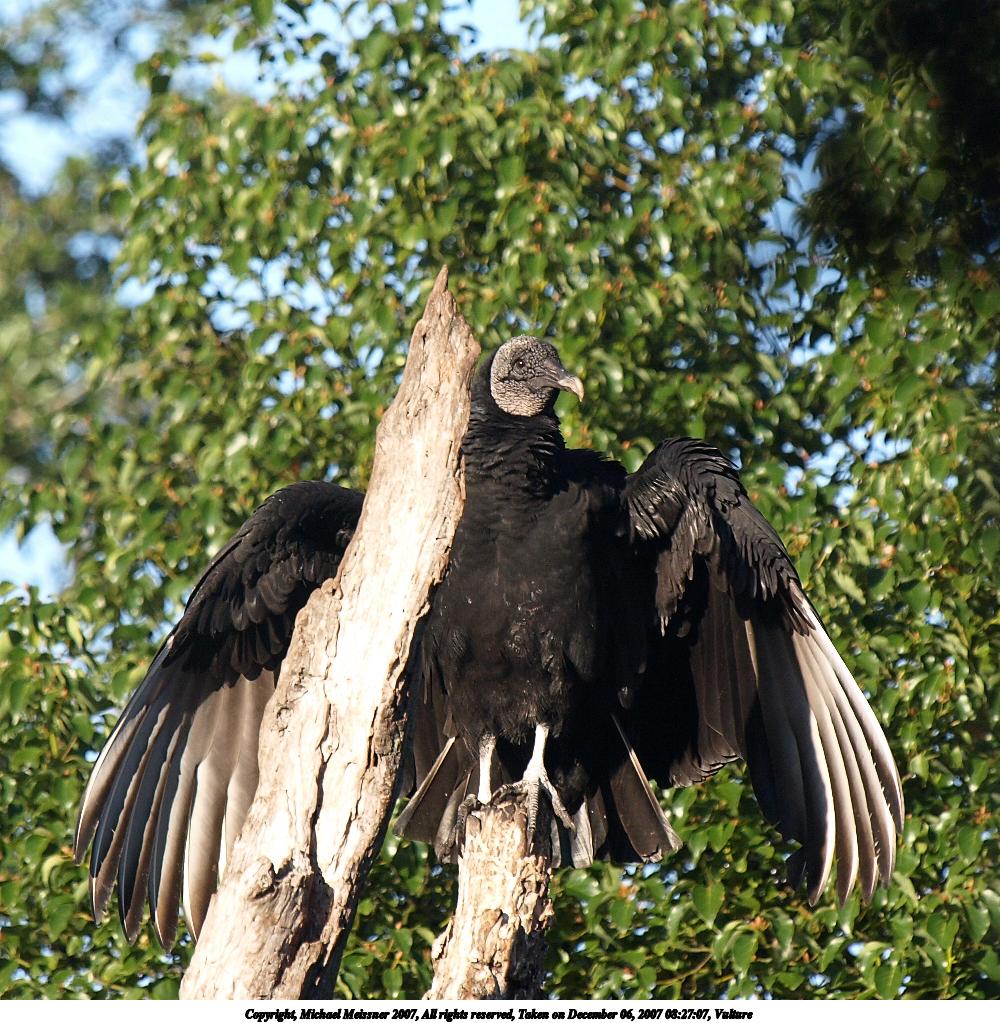 Picture #2: Vulture Thumb: 500x500, 99,317 bytes (97K) Small: 1000x1023, 225,913 bytes (221K), (html file) Copyright, Michael Meissner 2007, All rights reserved Olympus E-510 camera with Olympus 50-200mm f/2.8-3.5 lens and Olympus EC-14 (1.4x) f/6.3, ISO 400, 1/400 sec, 258.0mm, auto mode, natural color, SHQ, matrix metering, -1 sharpening, image stabilization, noise filter low 35mm equivalent focal length 517.0mm, EC-14 Programs used: gimp Taken by Michael Meissner on December 06, 2007 08:27:07 Last modified on December 06, 2007 at 07:27 The file originally appeared in http://www.the-meissners.org/2007-small-albums/2007-wdw-animal-park/index.html. |