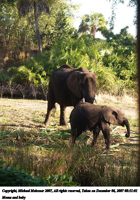 Picture #7: Moma and baby #3 Thumb: 240x320, 41,286 bytes (41K) Small: 480x686, 138,594 bytes (136K), (html file) Copyright, Michael Meissner 2007, All rights reserved Olympus E-1 camera with Olympus 14-54mm f/2.8-3.5 lens f/4.0, ISO 100, 1/125 sec, 49.0mm, auto mode, SHQ, matrix metering, +2 sharpening 35mm equivalent focal length 98.0mm Programs used: gimp Taken by Michael Meissner on December 06, 2007 08:51:01 Last modified on December 06, 2007 at 07:51 The file originally appeared in http://www.the-meissners.org/2007-small-albums/2007-wdw-animal-park/index.html. |